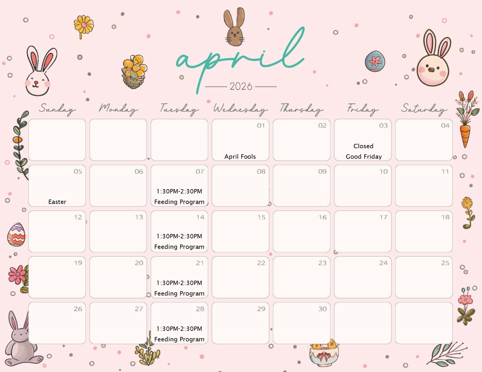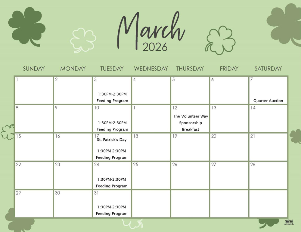 Calendars for Feeding Program: Dates & Times